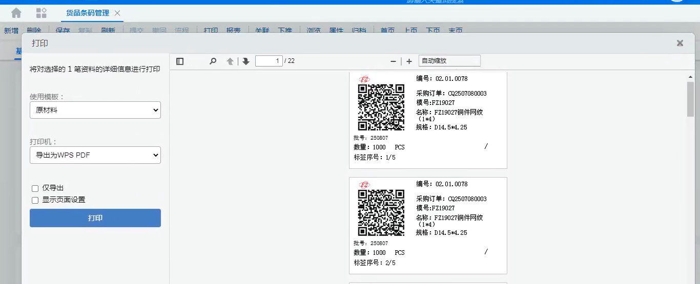 (二)工厂内部仓管打印材料标签