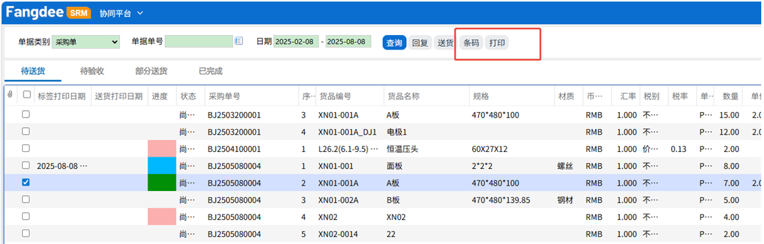 发表时间:2025-08-08 07:01 在现代制造业中,材料出入库管理是生产流程中的关键环节,直接影响生产效率和产品质量。方天WMS智能物流系统通过PDA扫码技术,实现了材料出入库的高效管理和精准追溯。本文将以材料出入库为例,详细解析方天WMS智能物流中PDA扫码出库的作业流程,涵盖材料标签二维码制作、采购入库扫码、用料出库扫码等关键步骤。 一、材料标签二维码制作材料标签二维码是实现PDA扫码出入库的基础,方天WMS智能物流系统提供了两种制作方式,以满足不同场景的需求。 (一)供应商在线打印材料标签