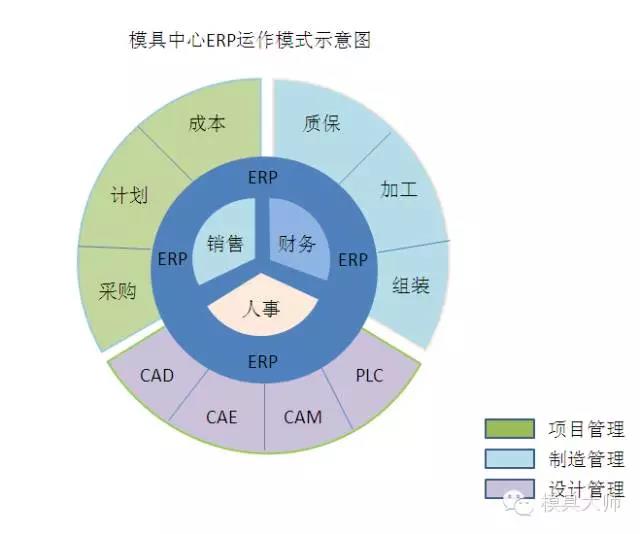 发表时间:2016-03-22 14:51来源:原创 我国正处于从模具制造大国向模具制造强国转变的进程中,信息化是模具企业发展的助推器,是模具企业提升管理水平、增强核心竞争力的必经之路。本文由最早从事模具ERP系统开发与服务的方天软件撰文,共分三篇,针对模具企业如何应用好模具ERP系统提出建议。 一、模具企业应用ERP管理的原因 1、模具是高精密技术型的产业,人员管理复杂,技术要求高,绩效考核不好控制。 2、模具属非量产的设备,零件数量多,其精度要求高,难以控制零件的分布状况和加工时间,整体模具的开模进度。 3、难以分析每套模具开模、修模、改模花费的工时及成本,其返修费用约占15%的成本空间。 4、模具生产数据交集复杂,造成生产混乱。 5、模具在设计、加工、管理乃至交付的过程中,会产生大量的数据,难以管理保存,信息交互等。